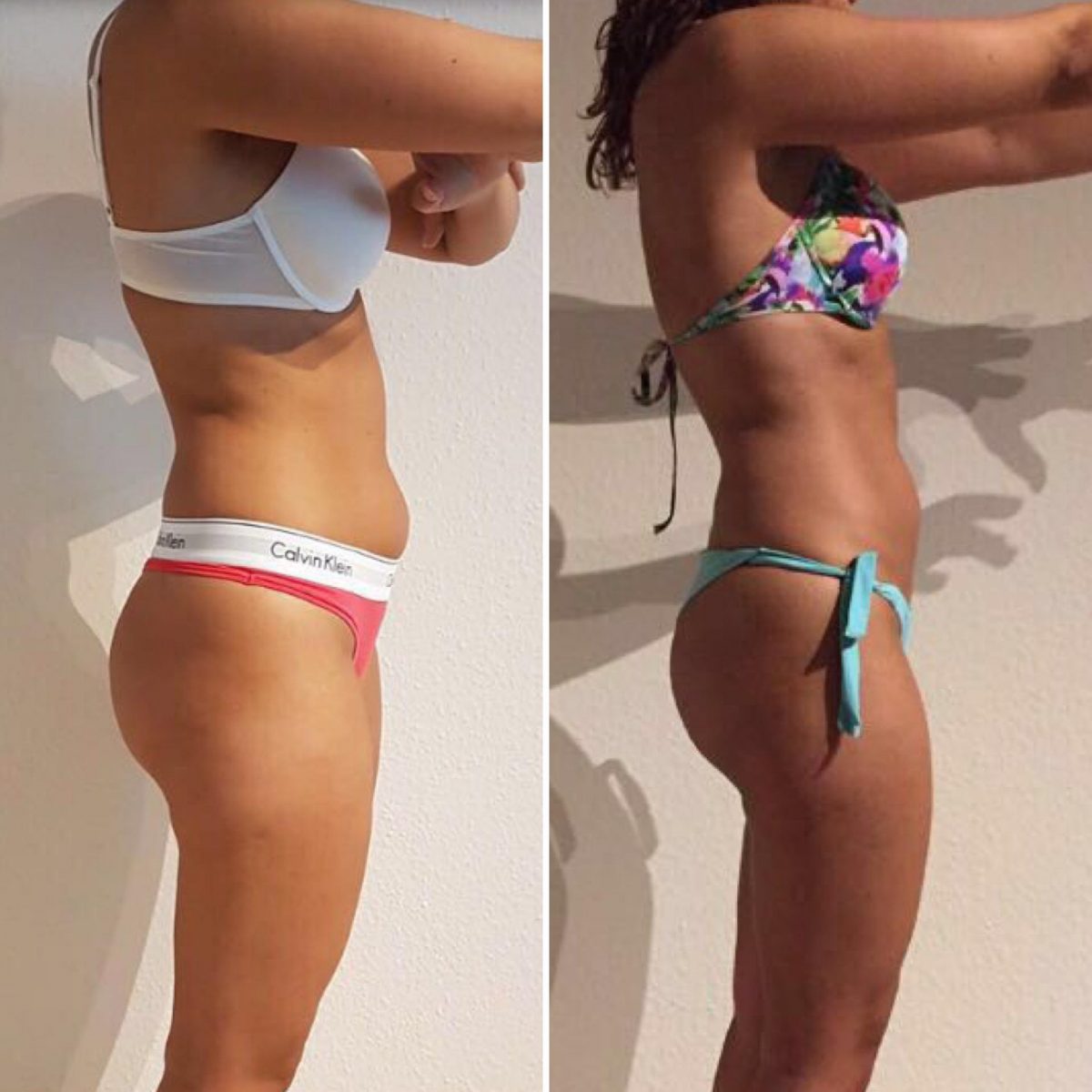 After 4 weeks, Joana has lost only one single Kg, but she has undergone this amazing transformation. The food restrictions were very soft and she has done no cardio.